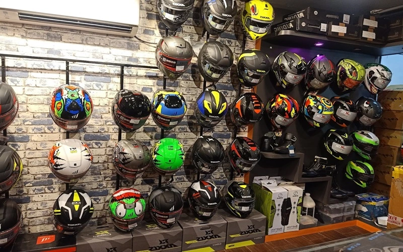 you can find a number of helmets, stickers, jackets, gloves and more at the VM Automobiles store in Wakad.